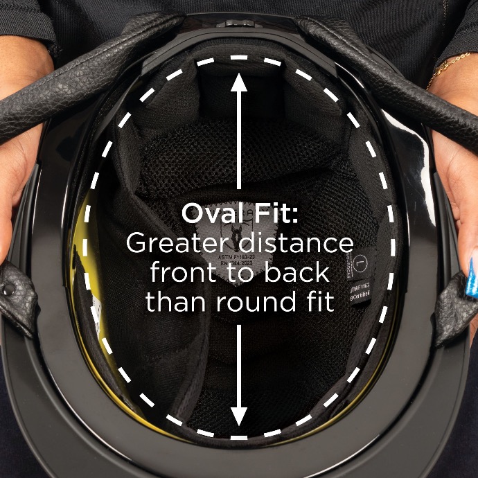 Helmets with an oval shell have a greater distance from front to back when compared to a rounder helmet. You may need an oval fit helmet if you find you experience pinching at the front or back of a helmet and/or gapping at the sides.